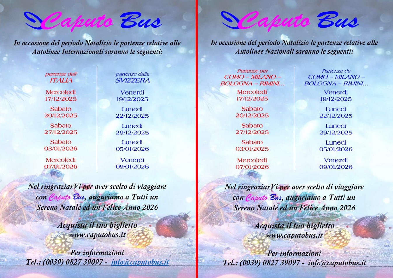 Home AUTOLINEA ROMA Orari Acquista biglietto AUTOLINEA NAPOLI Orari Acquista biglietto AUTOLINEA ITALIA-SVIZZERA Orari Acquista biglietto AUTOLINEA RIMINI-MILANO-COMO Orari Acquista biglietto AUTOLINEA AVELLINO Orari Acquista biglietto AUTOLINEA FISCIANO Orari Acquista biglietto I NOSTRI SERVIZI Autolinee Roma Autolinea Rimini-Milano-Como Autolinea Italia-Svizzera Autolinea Napoli Linee TPL