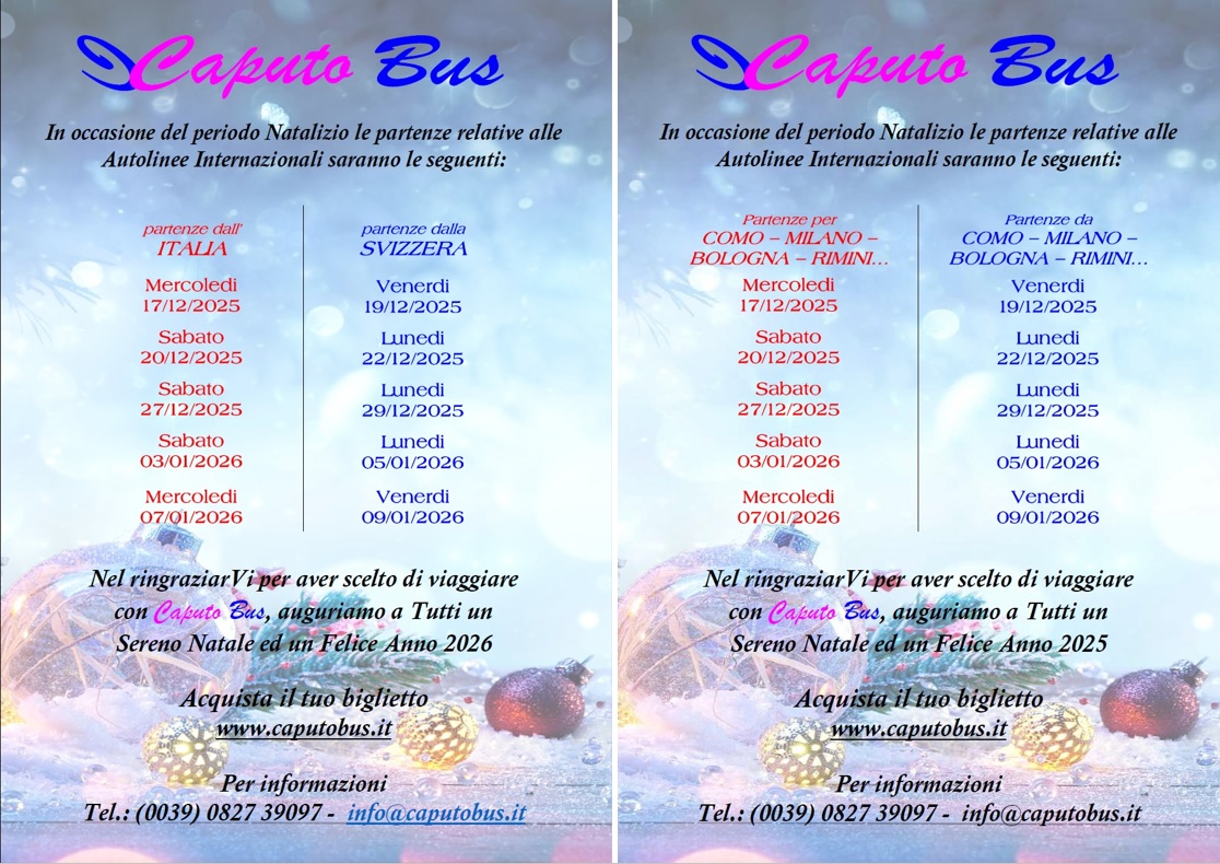 Home AUTOLINEA ROMA Orari Acquista biglietto AUTOLINEA NAPOLI Orari Acquista biglietto AUTOLINEA ITALIA-SVIZZERA Orari Acquista biglietto AUTOLINEA RIMINI-MILANO-COMO Orari Acquista biglietto AUTOLINEA AVELLINO Orari Acquista biglietto AUTOLINEA FISCIANO Orari Acquista biglietto I NOSTRI SERVIZI Autolinee Roma Autolinea Rimini-Milano-Como Autolinea Italia-Svizzera Autolinea Napoli Linee TPL